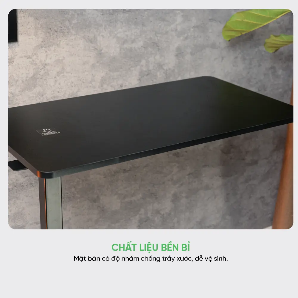 Mặt bàn kích thước 80x45cm, hoàn thiện với bề mặt nhám nhẹ chống trầy xước và dễ lau chùi. Giải pháp lý tưởng để đặt laptop, tài liệu, phụ kiện làm việc một cách gọn gàng và chuyên nghiệp.