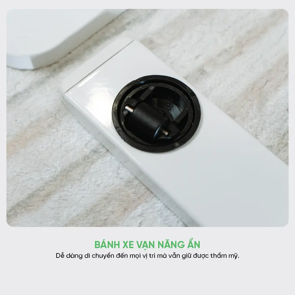 Bốn bánh xe ẩn bên dưới giúp bạn di chuyển bàn một cách nhẹ nhàng đến mọi vị trí mà không làm mất đi vẻ ngoài gọn gàng và hiện đại.
