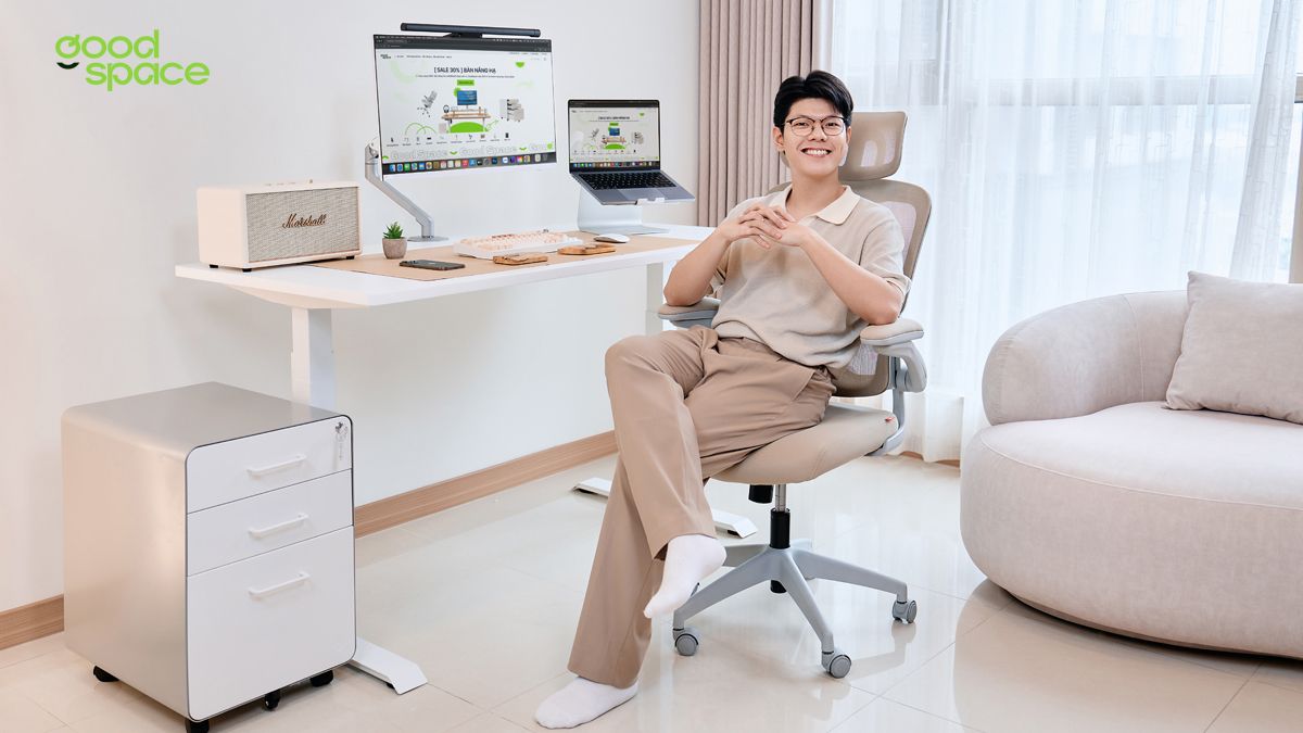 Tin tứcMC Mạnh Cường: Nâng Tầm Không Gian Làm Việc Cùng NiceDesign1 nămMC/Creator Mạnh Cường - một tên không còn xa lạ với mọi người đã đến và trải nghiệm các sản phẩm tại GoodSpace, mời bạn đọc đón xem những chia sẻ trải nghiệm của anh ấy tại GoodSpace qua bài viết này nhé.MC/BTV Mạnh Cường - Nụ cười rạng rỡ và hành trình truyền cảm hứngNhắc đến Mạnh Cường, khán giả truyền hình và cộng đồng mạng đều nhớ đến hình ảnh một MC/BTV tài năng, với phong cách dẫn dắt cuốn hút và nụ cười rạng rỡ. Mạnh Cường được mọi người biết đến qua các chương trình truyền hình đình đám như "Đường Lên Phim", "Bữa Cơm Gia Đình", "Chuyển Động 24h"... Không chỉ chinh phục khán giả bằng tài năng, Mạnh Cường còn thu hút bởi sự gần gũi, dí dỏm và một lối sống tích cực.Nâng tầm không gian làm việc - Nâng tầm cuộc sốngLà một MC/BTV, Content Creator, Mạnh Cường dành phần lớn thời gian cho công việc. Tuy nhiên, anh luôn ý thức được tầm quan trọng của việc bảo vệ sức khỏe và tạo dựng môi trường làm việc lý tưởng.Mạnh Cường chia sẻ: "Công việc của tôi đòi hỏi phải ngồi nhiều, dẫn đến những...