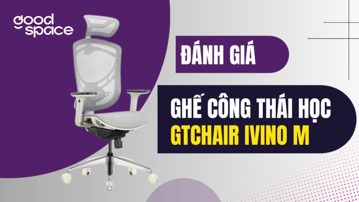 Góc làm việc hiệu quảĐánh giá ghế công thái học GTChair Ivino M liệu có còn ngon?1 nămQua những nhận xét của các anh em văn phòng chuyển sang dùng ghế công thái học GTChair Ivino M cho rằng cái lưng cũng đỡ đau, tinh thần làm việc cũng phấn chấn hơn hẳn. Bạn đang lăn tăn không biết có nên “xuống tiền” cho chiếc ghế GTChair Ivino M không? Hãy cùng GoodSpace tham khảo bài đánh giá ghế công thái học GTChair Ivino M liệu có còn ngon dưới đây để tìm câu trả lời phù hợp nhất nhé!Tổng quan về ghế công thái học GTChair Ivino MThương hiệu GTChair là hãng ghế công thái học hàng đầu thế giới, đã tồn tại nhiều năm và luôn được đánh giá cao trên thị trường quốc tế nhờ vào chất lượng vượt trội và thiết kế tinh tế. GTChair Ivino M là một minh chứng rõ ràng cho điều này, với sự kết hợp giữa khung kim loại chắc chắn và chất liệu lưới Wintex hiện đại, giúp tạo nên sự thoải mái tối đa cho người sử dụng.Các tính năng điều chỉnh linh hoạt như tựa đầu 3D, bệ tay 4D và khả năng điều chỉnh thăng lực dễ dàng khiến chiếc ghế này phù hợp với nhiều nhu cầu khác nhau. Piston Samhongsa Class 4 cũng là một điểm cộng lớn, giúp ghế chịu được tải trọng lên đến 150kg mà vẫn giữ được độ bền bỉ. Dân văn phòng, game thủ, hay bất kỳ ai phải ngồi làm việc lâu đều sẽ thấy rõ sự khác biệt khi ngồi trên ghế công thái học GTChair Ivino M. Ghế công thái học GTChair Ivino M là thương hiệu hàng đầu thế giới được nhiều người dùng quan tâmĐánh giá ghế công thái học GTChair Ivino MThiết kế, chất liệuĐầu tiên phải kể đến thiết kế của ghế công thái học GTChair Ivino M, với khung lưng hình chữ Y và điểm tựa lưng ngay giữa, tạo dáng vẻ hiện đại và tối giản cực kỳ bắt mắt. Cùng với đó, chất liệu lưới Wintex cao cấp không chỉ mang lại sự mát mẻ, thoáng khí suốt ngày dài mà còn đem lại cảm giác êm ái, dễ chịu khi ngồi.Mấy anh em trong văn phòng mình từ khi chuyển sang dùng em này, bảo rằng ngồi từ sáng đến chiều mà lưng vẫn không thấy mệt mỏi. Nói chung, với thiết kế linh hoạt, đa dạng từ điều chỉnh độ cao, độ nghiêng, cho đến các bộ phận như tay vịn và đế ghế, ghế công thái học GTChair Ivino M thực sự là lựa chọn hàng đầu cho dân công sở và cả những ai cần một không gian làm việc thoải mái tại nhà.Chất liệu lưới Wintex cao cấp, mát mẻ và thông thoáng tốtKhả năng điều chỉnhNếu bạn là dân văn phòng hay phải ngồi bên bàn làm việc cả ngày, thì chiếc GTChair Ivino M này có thể là "cứu tinh" cho bạn đấy. Cái hay của Ivino M là cái tựa tay cực kỳ linh hoạt, điều chỉnh được đủ kiểu: nâng lên hạ xuống 10cm, xoay ngang 45 độ, dịch chuyển tới lui 6cm, thậm chí là sang trái sang phải 3cm. Đây là điều mà mấy chiếc ghế khác mình dùng trước đây không có.Còn cái mâm ghế, nó cho phép mình trượt ra trước hay lùi về sau tới 6cm nữa, giúp giữ được tư thế ngồi chuẩn xác, không bị mỏi lưng hay cổ. Tựa đầu 3D của ghế giúp điều chỉnh theo nhiều hướng khác nhau như chiều cao có thể kéo lên hạ xuống cho vừa vặn với vị trí đầu của mình, đảm bảo sự thoải mái tối đa. Tiếp đến là góc nghiêng, cái này cực kỳ tiện lợi khi bạn muốn tựa đầu một chút để thư giãn mắt hay cổ sau những giờ làm việc căng thẳng.Khả năng điều